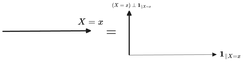 It would be nice to give the subspace a special symbol, perhaps . But at a glance this reads like some kind of regular projection of , and would give just a one-dimensional vector. We would have to give some special semantic, similar to (my preferred symbol for vector projections), such that specifically leads to the just given. I doubt this construction would be much use outside of the context of random variables, anyway, as one usually does not have such a privileged basis of indicators on which to define “level sets” of a vector; it is obscured here but the entire idea of is defined w.r.t. the indicator basis in particular.