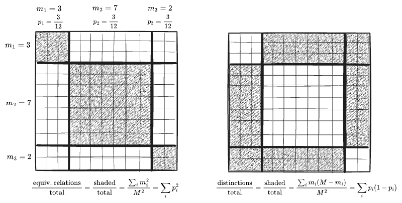 , which in other contexts is known as the Gini impurity or Simpson diversity index. ↩