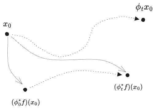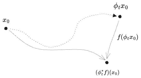 We can immediately write down the general form of the pushforward time-evolution operator on densities:
