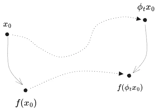 My aim in this post is to plot a simple course through elementary dynamical systems theory to arrive quickly at some of the basic elements which appear in physical theories like quantum mechanics. In learning physics we normally encounter many of these concepts only when we first need them, and rarely see clearly how generic they turn out to be. It should help to follow the story from the beginning—all we need is first-order ordinary differential equations.
